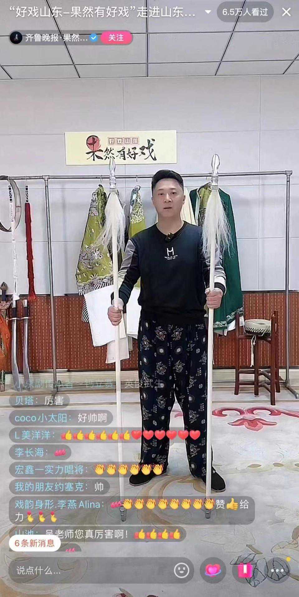 就连平时大家在京剧中经常见到的一些道具也来了次“集结式”直播秀,吴雪靖和文武小生潘德尧对每个道具的名称和用法都进行了详细的介绍和演示,网友纷纷表示“学到了”。