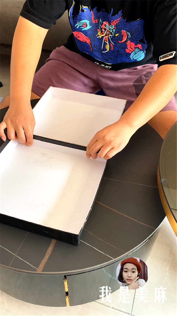 首先,准备一个大鞋盒。最好选用质量好一点的鞋盒。
