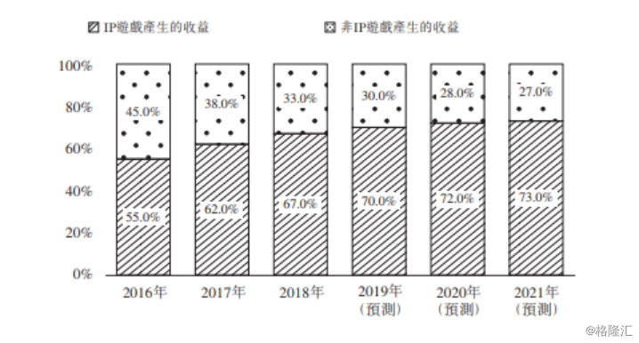 其中,以所产生的收益计,于2018年,基于IP开发的游戏分别占AppleAppStore50大免费及畅销游戏的71.0%及61.0%。而IP手游产生收益人民币972亿元,预期将于2021年增至人民币1,679亿元,复合年增长率为20.0%。