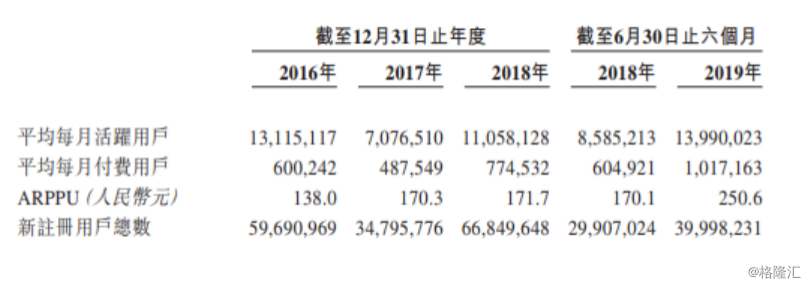 根据招股书,截至2018年12月31日止年度,公司的平均付费用户转化率为7.0%,远高于行业平均值。同期,公司平均每月活跃用户1105.81万,每付费用户平均收益(ARPPU)为171.7元,较2017年的170.3元进一步上升。