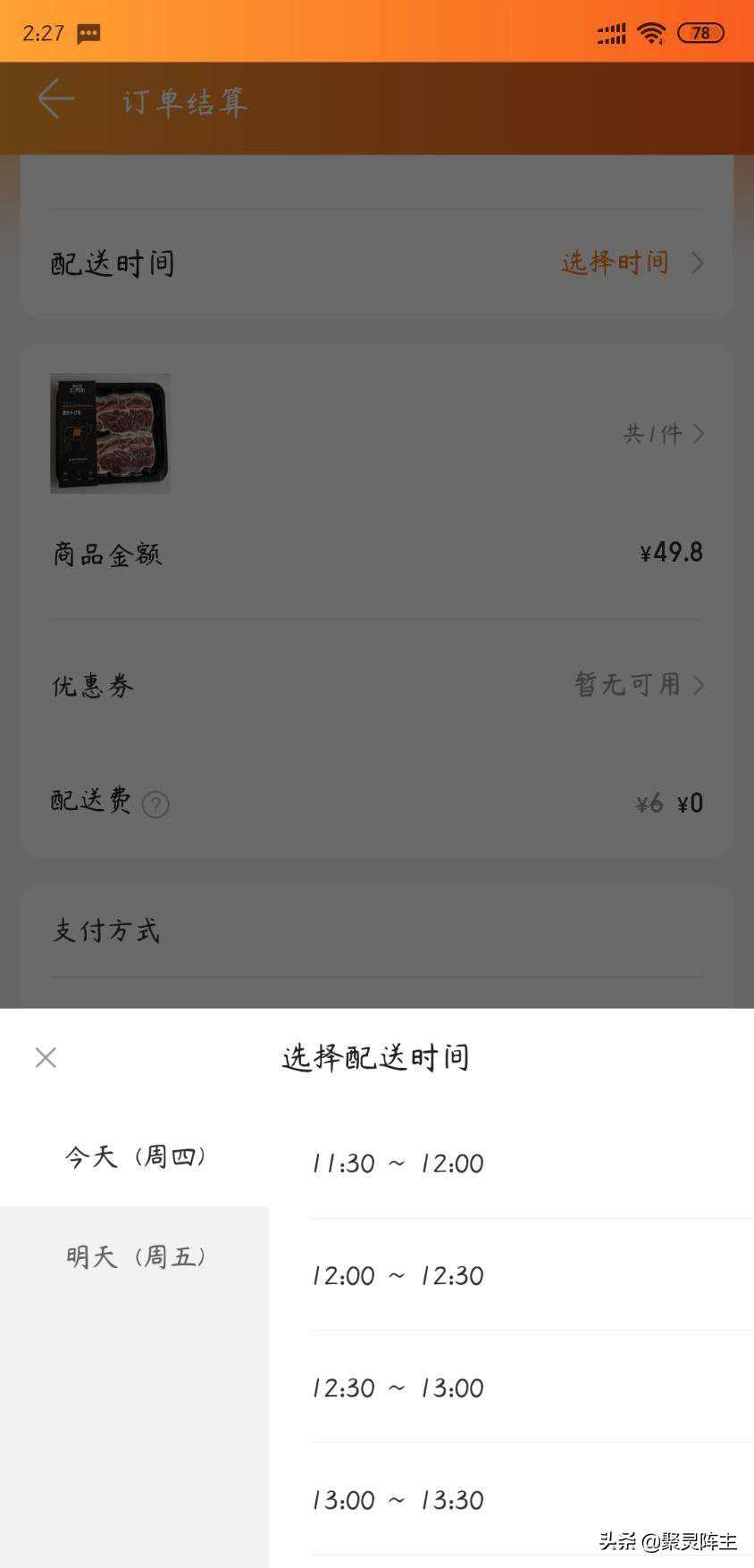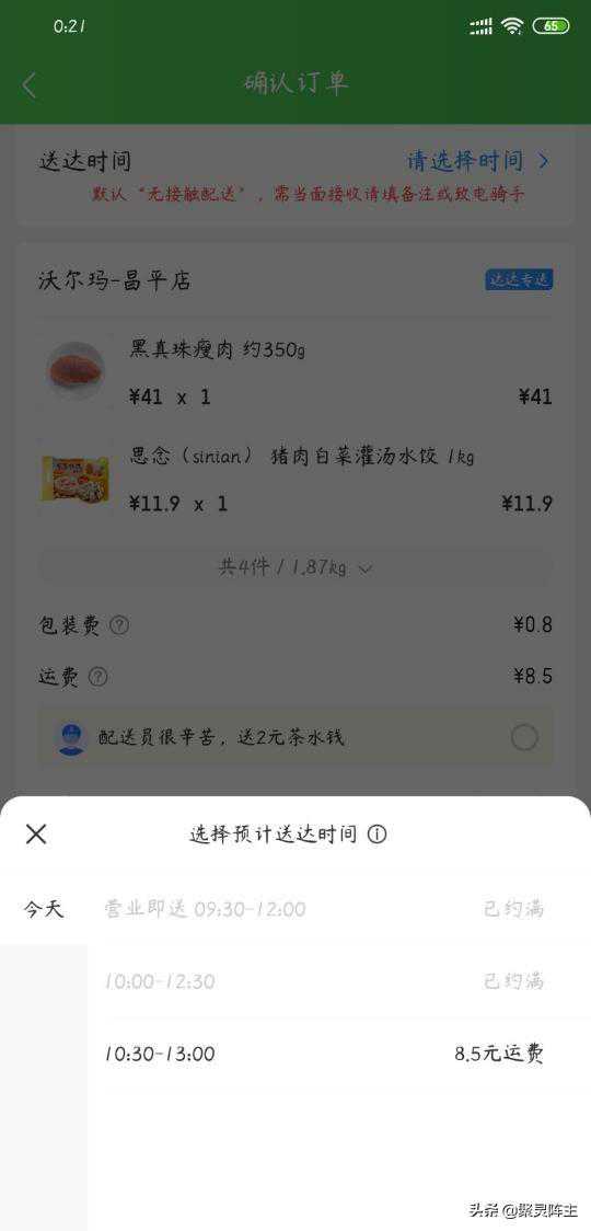 最后我随便试下单了一下,的确是可以约到12点之后的配送,也算是可以做到当日达了。