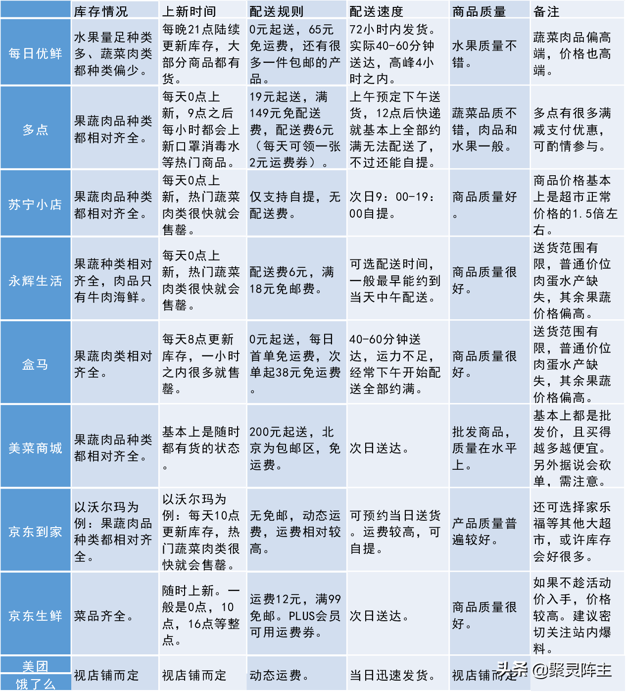 关于这次提到的所以有互联网买菜方案,我都进行了汇总和总结,它们的产品大部分我都亲身经历过,少部分本人没有体验过的,也作出了标注,供大家参考呀。