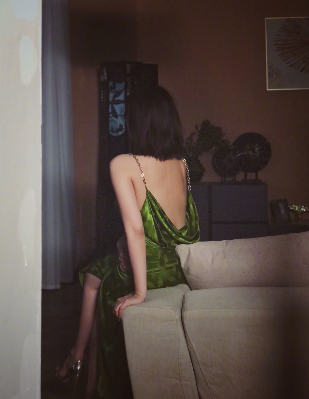 这种纯色吊带裙很显气质,但也容易让人误以为是“伴娘裙”,大家买的时候不妨选更有设计感的,像这条肩带、领口是不对称的设计,更活泼一点。▼