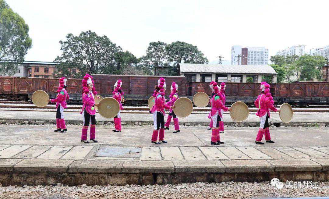 与此同时,火车站还推出具有当地民族特色的非物质文化遗产图片展和彝族歌舞表演。图片展展出了近100张非遗和百年米轨照片,全方位、多层次地展示开远魅力,助推优秀传统文化走到群众身边,让广大群众充分领略非遗之美。
