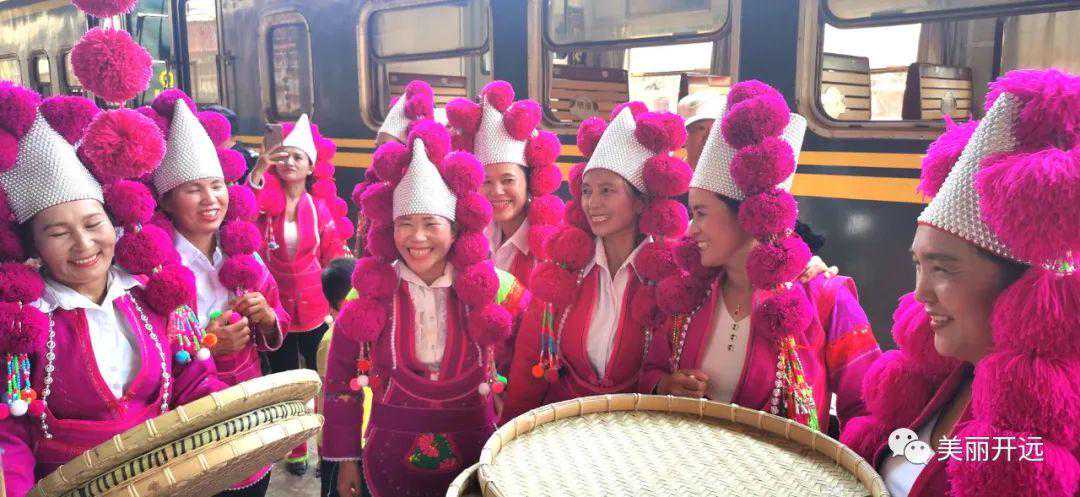 身着“仆拉红”、帽尖悬吊红色线球的彝族妇女在站台上跳起了簸箕舞。艳丽的民族服饰,欢快的舞蹈犹如山间绽放的杜鹃花,丰富多彩的活动吸引围观游客纷纷拿出手机拍照留影,整个站台成了歌舞的海洋。