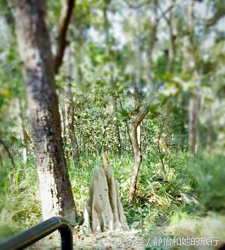 头发长见识短的我还以为那白色的三角假山是方向标,怕人们在森林里迷路。后来听向导“小黑”介绍说那是白蚁穴,汗!!!