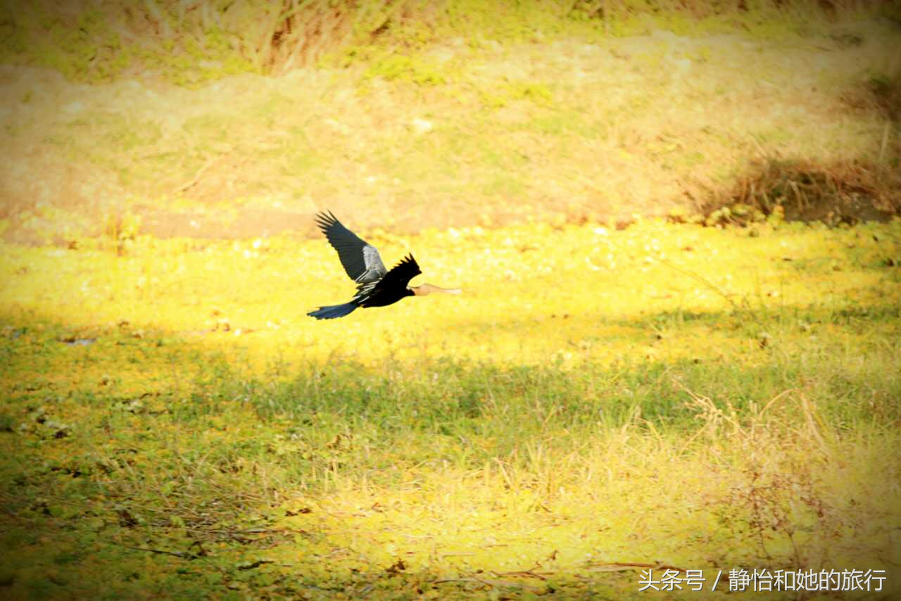 四个小时的寻觅、跋涉,此刻已近黄昏。芦苇映着落日余晖随风荡漾,一队美籍游客仍然拄着手杖奔向丛林深处