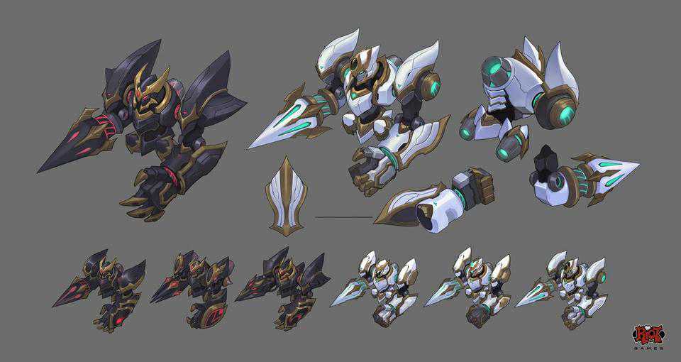 零之枪骑布里茨是”一款“基于科幻、恐怖或者幻想的皮肤。布里兹这款皮肤面世之前已经好一段时间没有比较正经的皮肤了。所以设计师尽可能多地绘制符合以上类型的铁钩概念图。