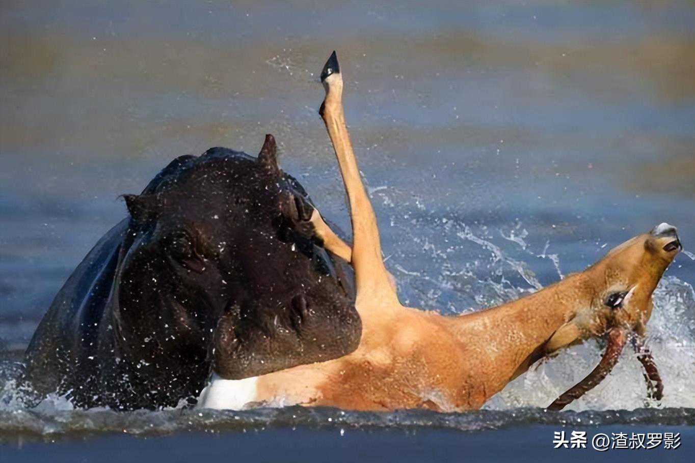 河马不仅速度快,而且擅长潜水,它能在水下憋气5-10分钟,然后从水底突然跃起,如同导弹从水下射出,一口将敌人咬个粉碎。