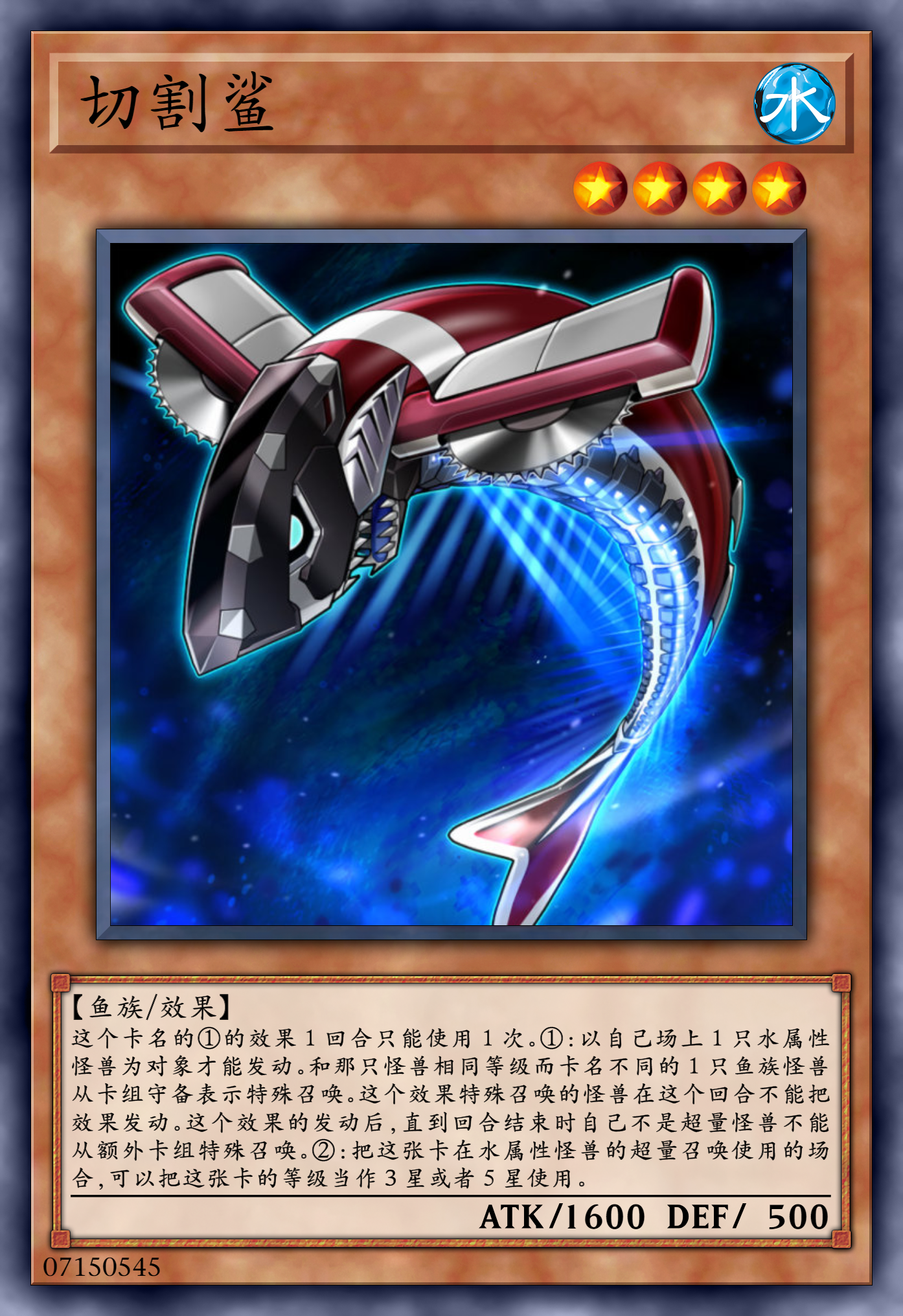以卡名中有「鲨/シャーク/Shark」字段的相关卡牌所组成的卡组。部分效果主要跟水属性怪兽和鱼族怪兽有关。