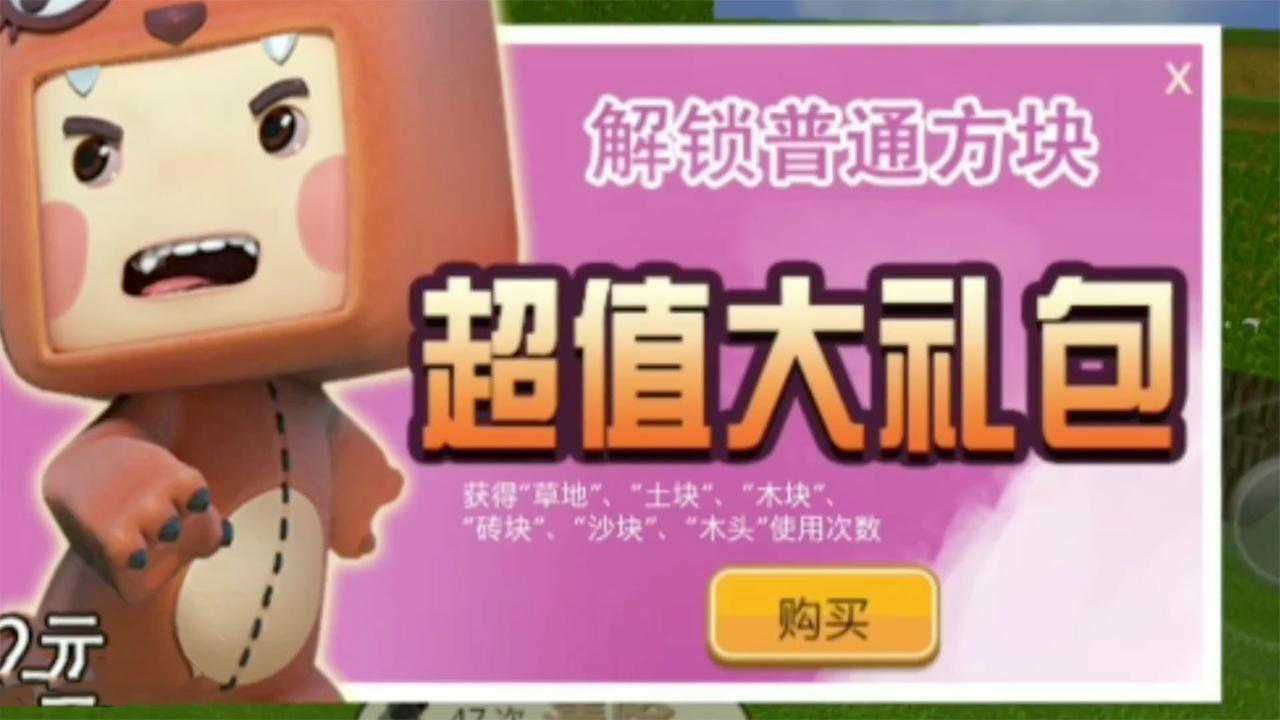 这个充值包里面包括获得草地木块土块的次数免费是50次,超过这些次数之后你就需要充值。这简直是氪金界的大佬,从来没有看到过这么不要脸的一款游戏。我们知道一款游戏,如果要向玩家充值可以理解,但是直接从次数上来限制游戏的体验性。可以说简直是毫无人性。