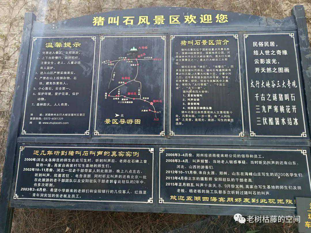 到达猪叫石时,突然起了大风,加以时间紧张,我们没有进入景区,只是从景区介绍板上了解到猪叫石是一“神石”、“报警石”,因其发音如猪叫而得名,据说每逢国家有事必叫,这真是一个神奇的传说。
