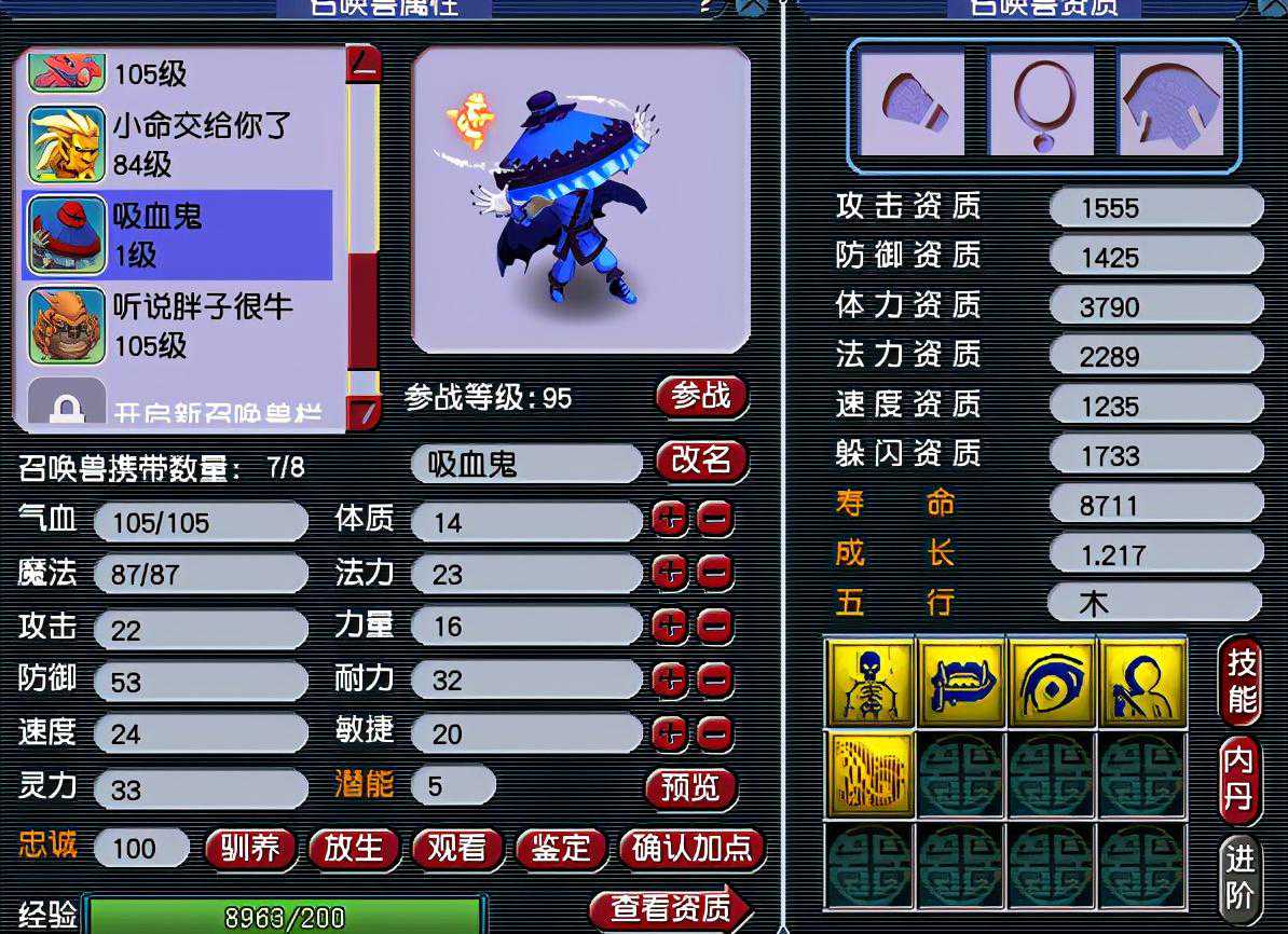 最奇特的是,第二只变异吸血鬼是5个技能,攻击资质1555,虽然成长低但是高资质、极限满技能在开109级的第一天是很罕见的。传音一喊,从3000大洋到被抬到5000大洋,只能说现在的老板是真的不差钱。宝宝卖了,但是玩家并没有准备把这钱砸到号里去,因为现在砸钱都是亏,他只想靠着打图押镖慢慢养号,做一个努力的打图唐。