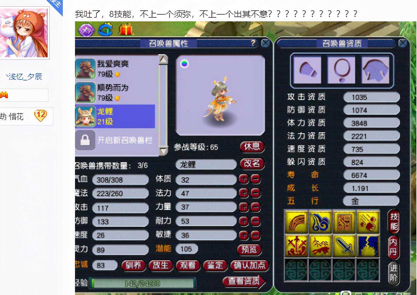 玩家合出一只6技能的须弥龙鲤,和一只3特殊集于一身的涂山雪。上古灵符、剑荡四方+出其不意,这3个技能能组合在一起,真是不知道他是怎么玩炼妖的。两只6技能的胚子特殊技能加起来就是4个,于是他决定冲刺一波4特殊。合成后果真出了只龙鲤,但是上古灵符和剑荡四方都上去了,唯独须弥真言和出其不意这2个最重要的技能不在。这就是炼妖带来的刺激感,满是幻想的觉得可以逆袭,合成出来后满是绝望。