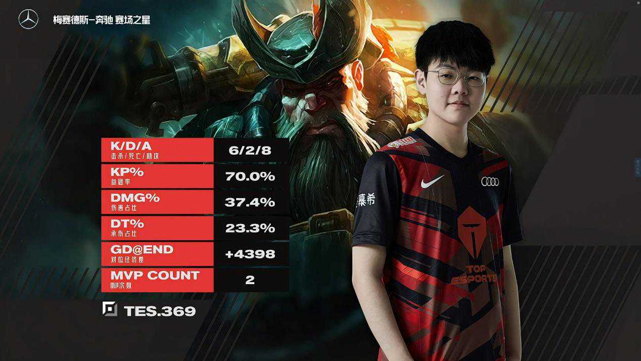 369在TES战队出道,一开始征战赛场打职业,就以一手武器击败LPL当时以操作见长的上单剑仙Jinoo,初生牛犊不怕虎,进攻性直接拉满,但同时也存在很多新人常有的缺点,在打职业的过程中,多次被TheShy教育,之后自身心态和打法也出现问题。