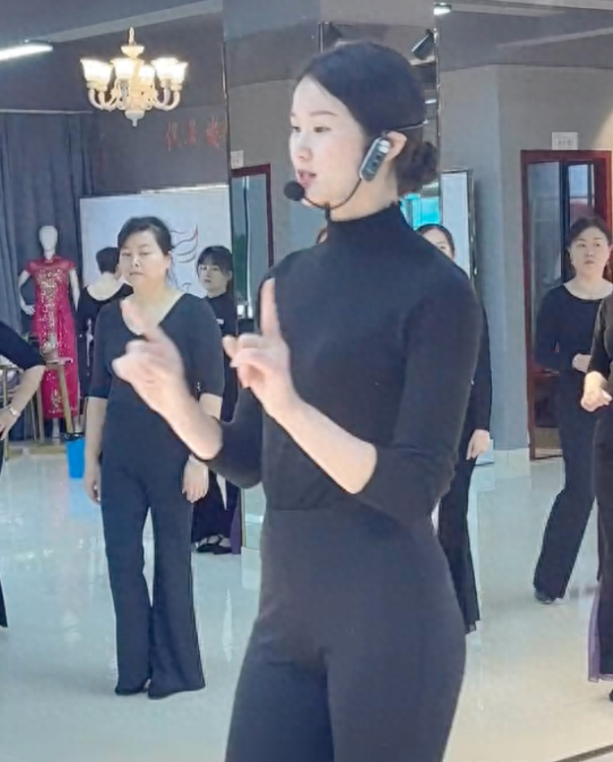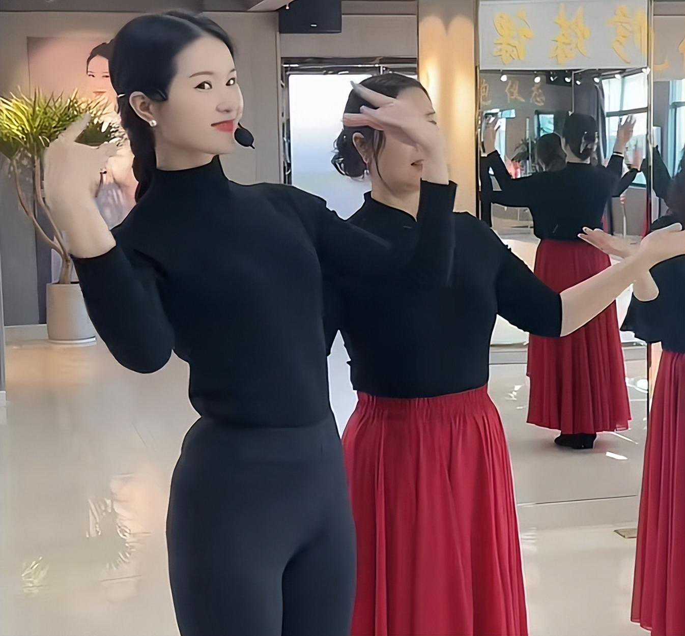 和学生一起穿上旗袍,走在教室中看起来十分优雅。