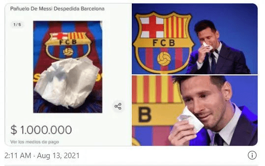 前段时间,足球巨星梅西在西班牙诺坎普球场举行告别巴萨发布会时,一把鼻涕一把泪。