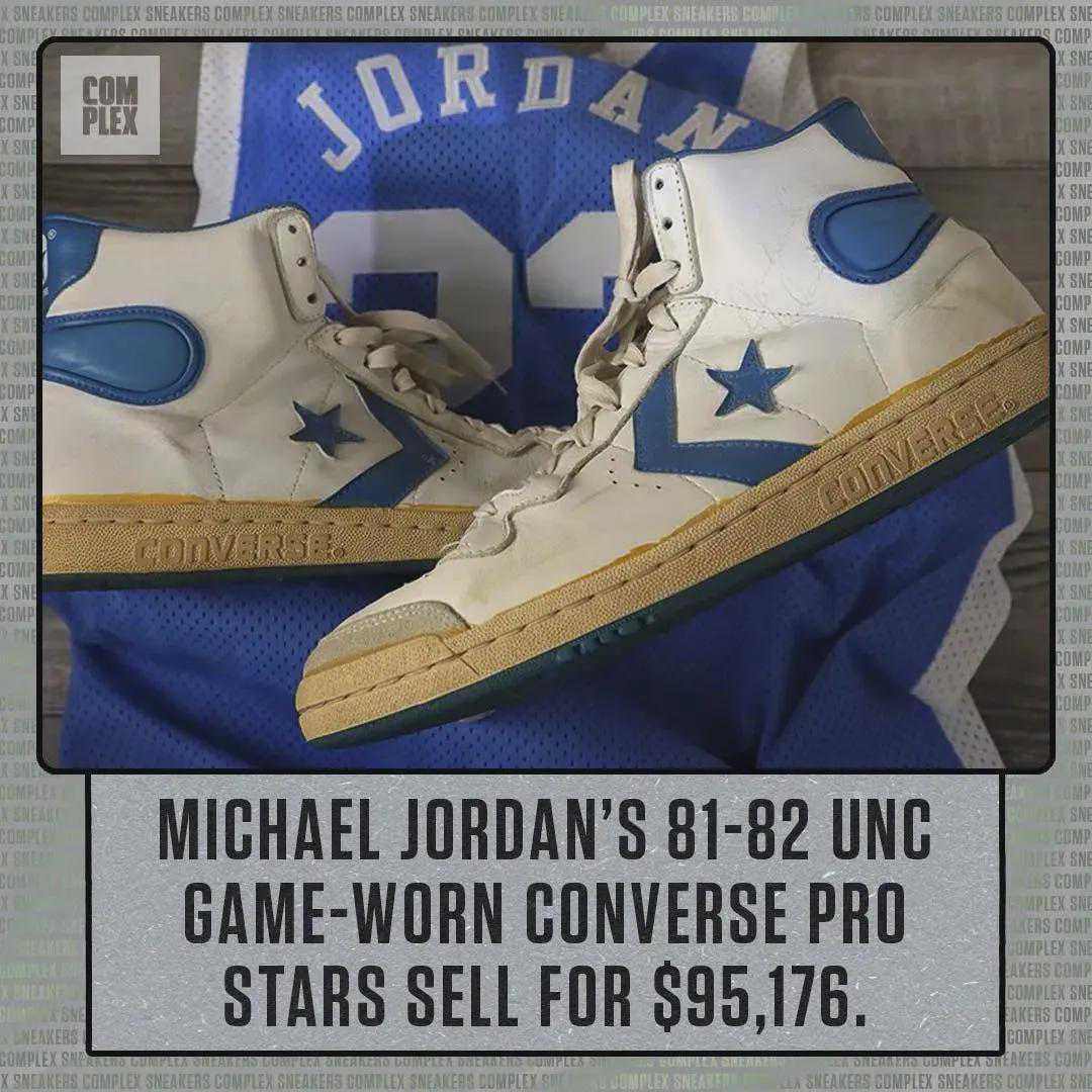 乔丹在1981-82赛季效力于北卡时,穿着ConverseProStar“UNC配色,以9万5千美元(人民币67万元)的价格成交。