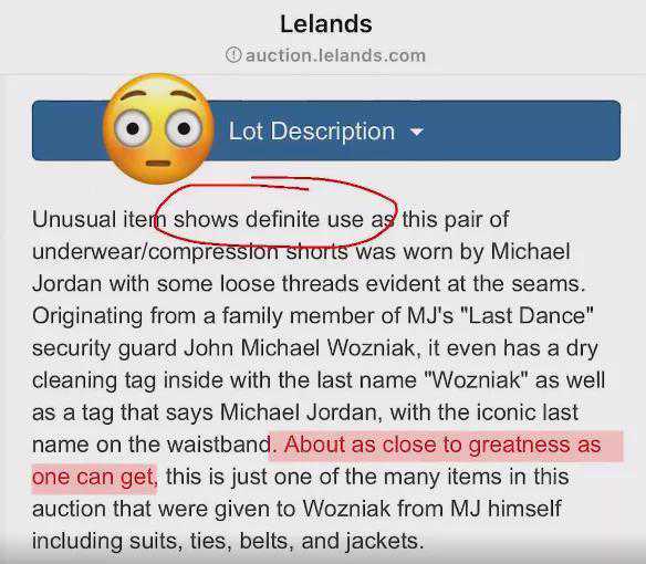 虽然乔丹纪念品近几年价格水涨船高,不过签名鞋和球服的收藏价值远远大于一条原味内裤,我是不理解500元买条开线内裤的意义,不过既然有人出价,可能真就是铁粉或者骨灰级收藏者了吧……