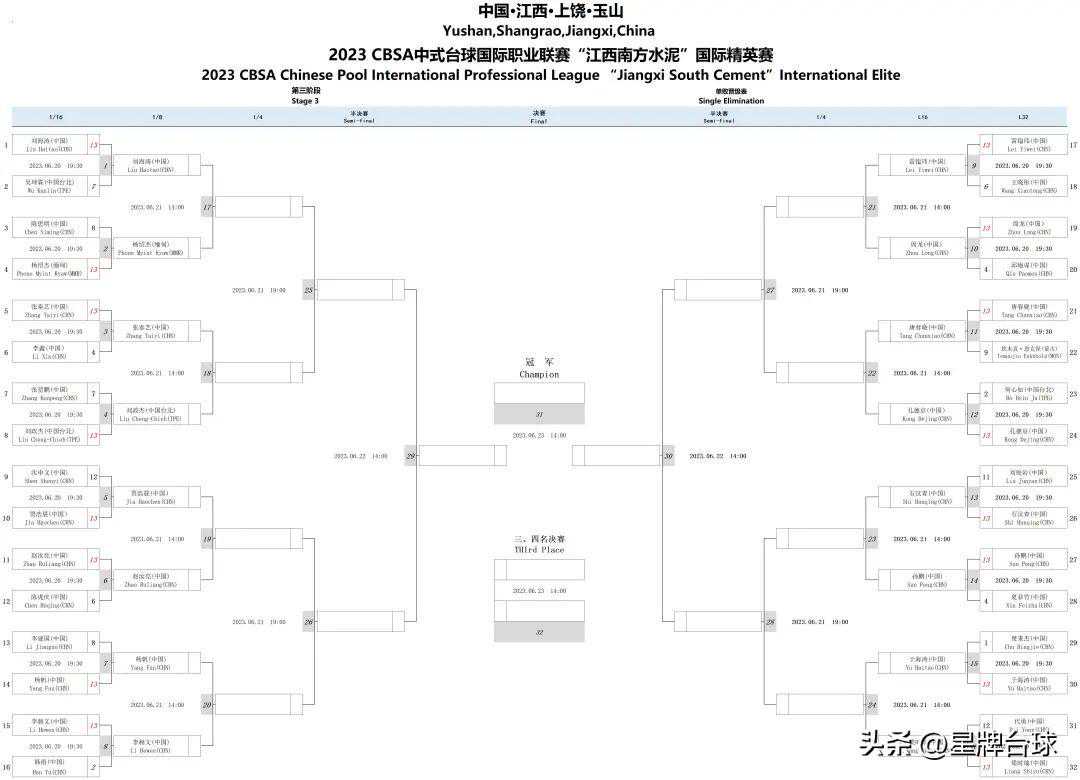 6月20日下午首先结束第二阶段双败场次,32强阵容出炉。率先进行的胜部晋级轮,张堃鹏和杨绍杰这对老冤家再次相遇,两人上一次交手留下的故事成为热衷于八卦的粉丝的谈资。不过本场比赛,两人则将注意力完全放在球桌之上,共同演绎了一场惊心动魄的决胜局大战。两人在决胜局先后因为犯规送上自由球,杨绍杰凭借大心脏完成高难度清台,涉险过关。楚秉杰迎战石汉青,这场强强对话因楚秉杰的强势发挥沦为一边倒。全场比赛楚秉杰轰出8杆清台,11-3速胜。石汉青无奈苦笑,近期多次迎战楚秉杰几乎没有招架之力。