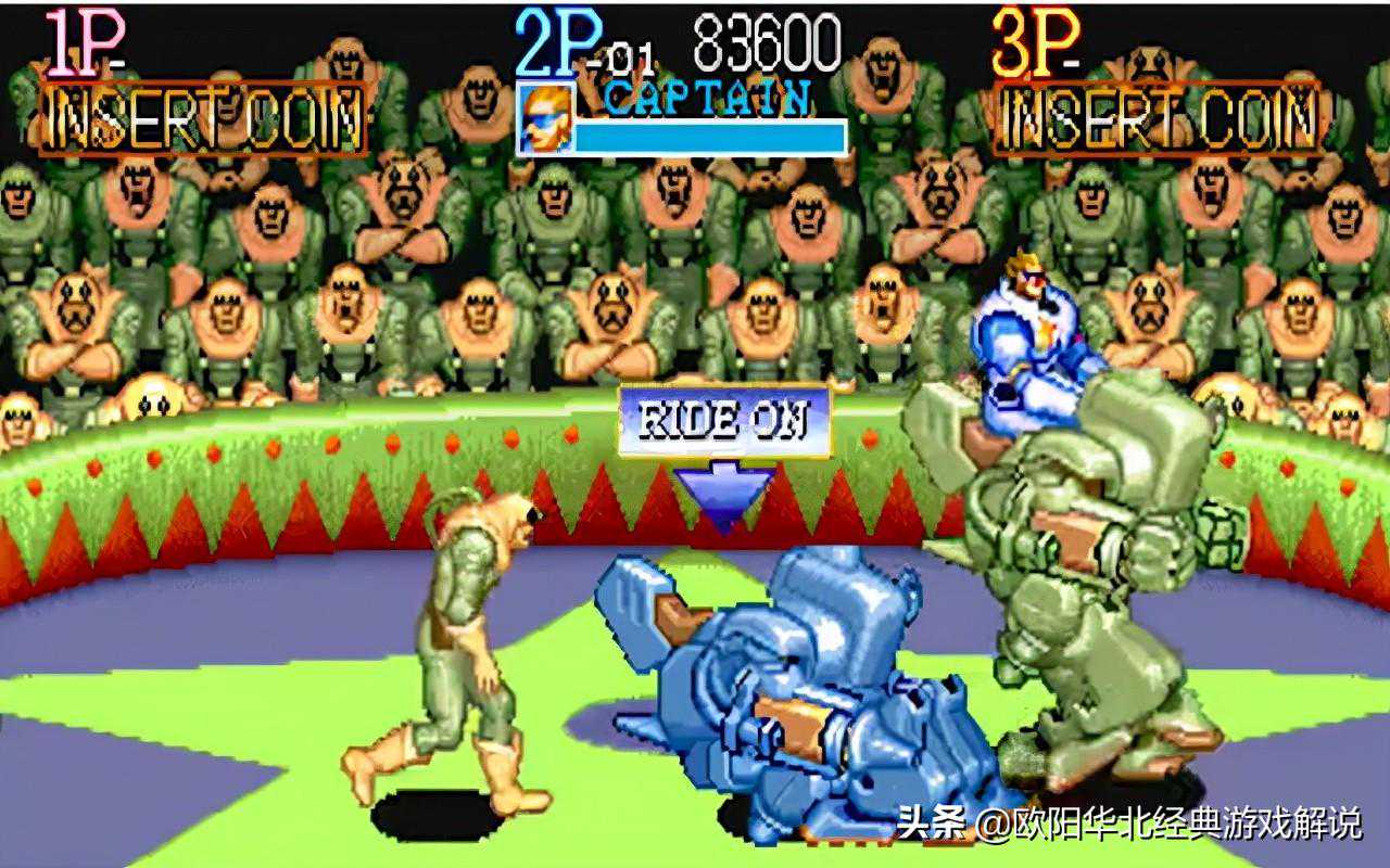另外一个重要的变化,就是坐骑概念的引入。主角可以坐上巨大的步行机同敌人作战。虽然威力巨大但是由于行动迟缓体积巨大,被攻击的可能也大大增加,这个系统被以后很多作品所借鉴。街机游戏《名将》确立了Capcom横版清关的典型构架,堪称经典之作。
