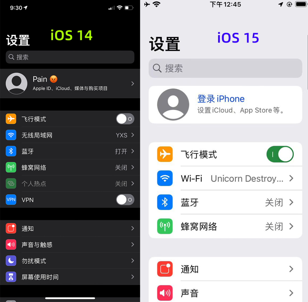 当然!iOS15虽然在桌面端变化较小,但在一些菜单上诸如设置应用,iOS15还是采用了新的设计。