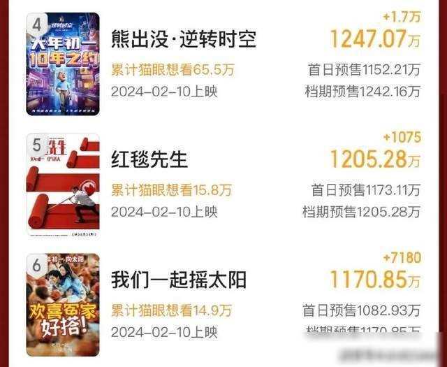 再者,我们也不能忽视《熊出没》系列在娱乐市场上的坚实地位。作为春节档的守门员,它一直扮演着重要角色。今年的春节档,尽管有多部影片上映,但《熊出没·逆转时空》依然稳坐宝座,成为了备受期待的焦点。这不仅彰显了其在市场上的强大号召力,也印证了其在娱乐圈的不可撼动地位。