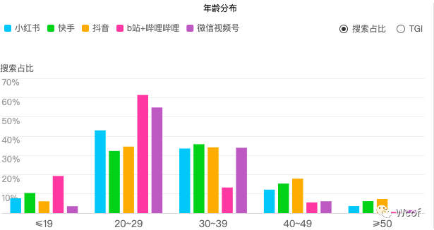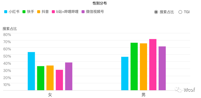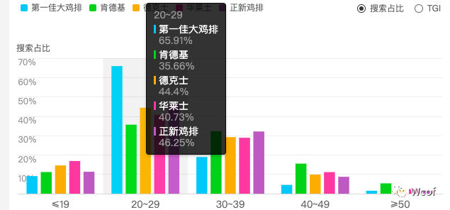 观察搜索他们的群体层级。我们因为精力有限和非专业等原因去除抖音后,发现B站群体高度与喜爱搜索相关炸鸡的群体高度重合。也都是20-29岁青年占了近60%,且男性比女性偏多。所以我们以B站渠道为主其他渠道为辅的原则进行渠道扩展。