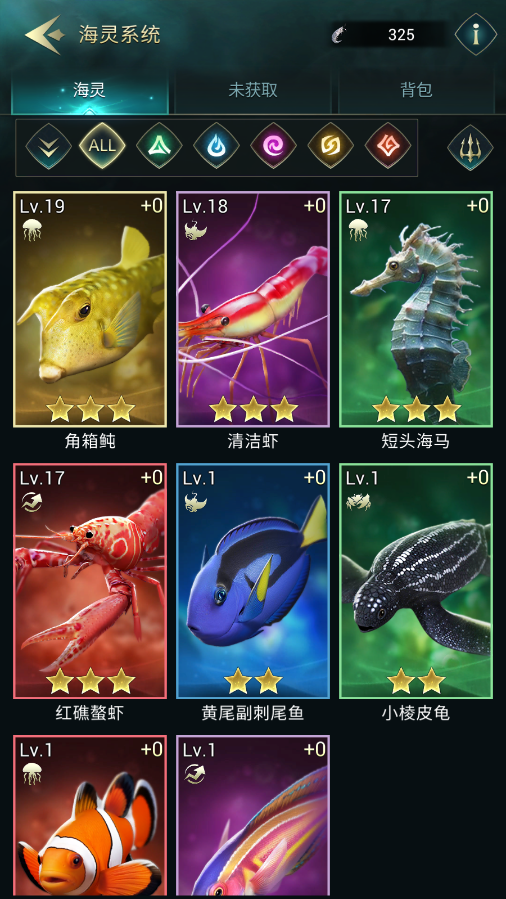 游戏里的卡牌就是各种海底动物,包括鱼、虾、海马、海龟等等,几乎是完整地构建出了海底的生态环境。