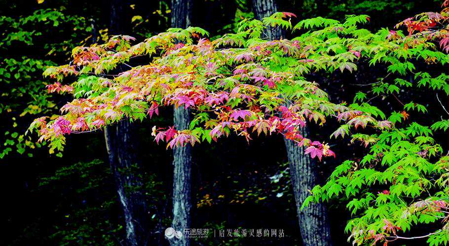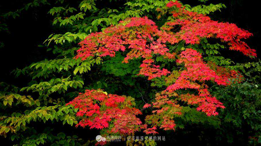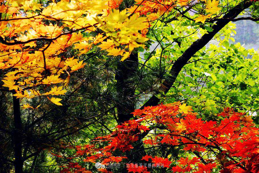 林间的红叶恰到好处的点缀着墨绿的山林,红绿相间,一份只属于秋日的哀愁,在绚烂的燃烧,她焚身浴火,只为这一刻的绽放,她默默地,悄无声息的点燃了秋日最迷人的一抹。