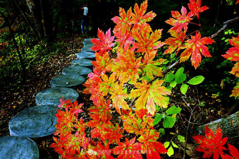 枫树林间因为有了旅人的点缀才会显得如此的活力,千万不要错过这一刻的宁静,片片枫叶正在尽情的燃烧着生命中最绚烂的瞬间,把时光凝固,让画面永存。