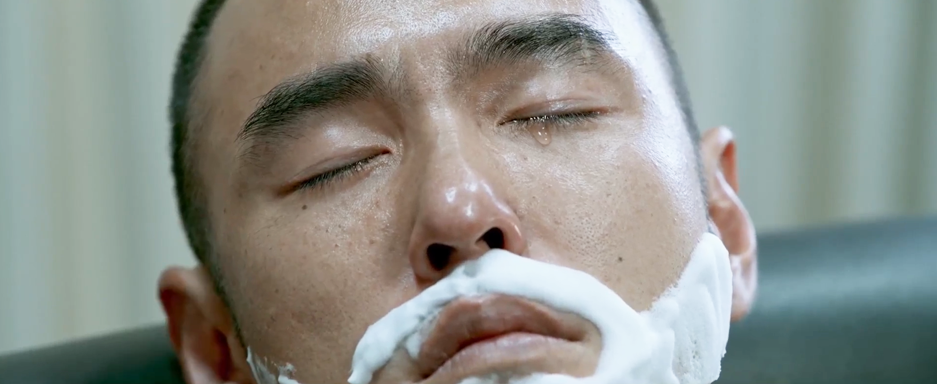 陈桂林的脸上带着微笑,之后在小美给他剃须时开始难以自抑的流泪。