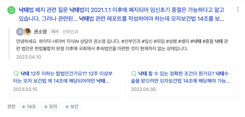 所以用韩文搜索“堕胎”时,我们主要看到的仍然是韩国女性讨论“堕胎合法化”的相关内容。