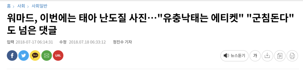 在韩文媒体中,关于WOMAD极端女权堕胎帖子的新闻,可以定位到2018年7月左右。