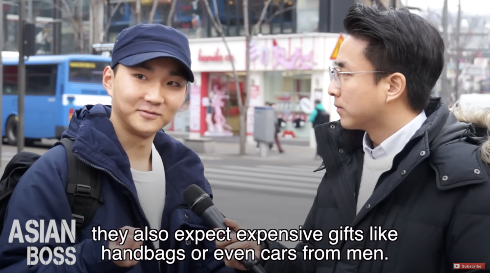 韩国男性形容韩国女性是“自私、虚荣,乐于物质剥削伴侣的拜金婊”。