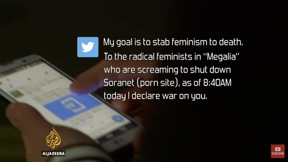 一位男权组织者因为Soranet色情网站被关闭,向女权主义者宣战。