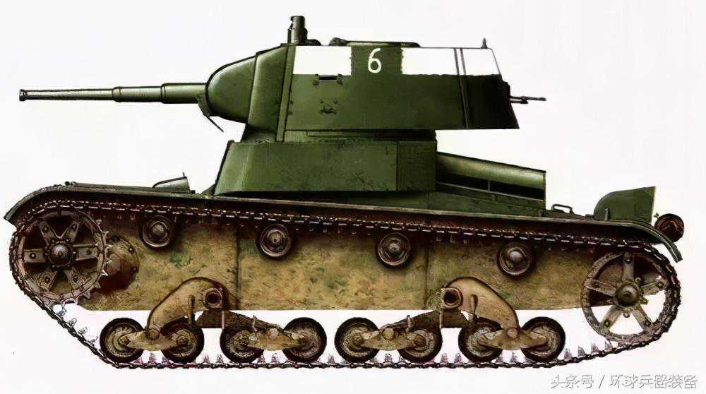 苏联T-26轻型坦克实际上就是英国维克斯6吨MkE轻型坦克的仿制品。早期为双炮塔版本T-26A1,基本上是英国维克斯坦克的复制品。后期版本T-26A2,这版是苏联的改进版,实现了完全的国产化。