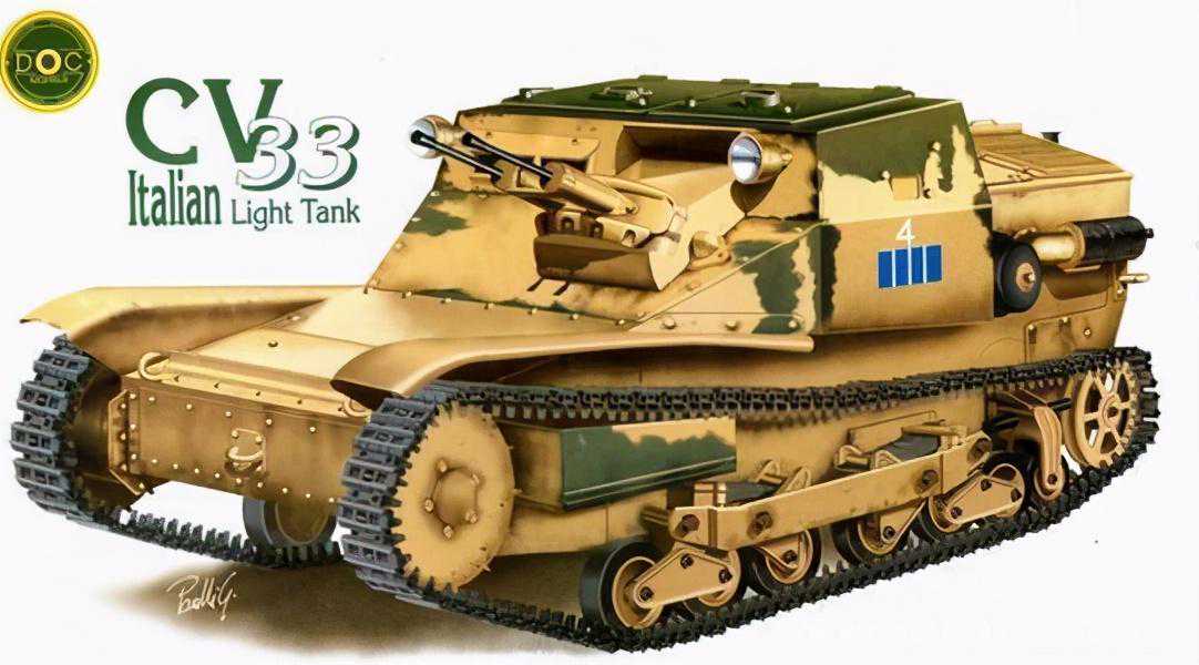 意大利菲亚特L3轻型坦克(CarroArmatoL3/CV33)。L3被归为“超轻型坦克”,意思是比轻型坦克还要小,是第一次世界大战之后的设计。超轻型坦克体积较小,没有独立炮塔(武器装备固定在车体上,装备有各种轻机枪,重量非常轻。超轻型坦克的价值在于高速度,可以用来侦察,并为乘员提供一定程度的保护,在支持步兵行动时具有一些价值。