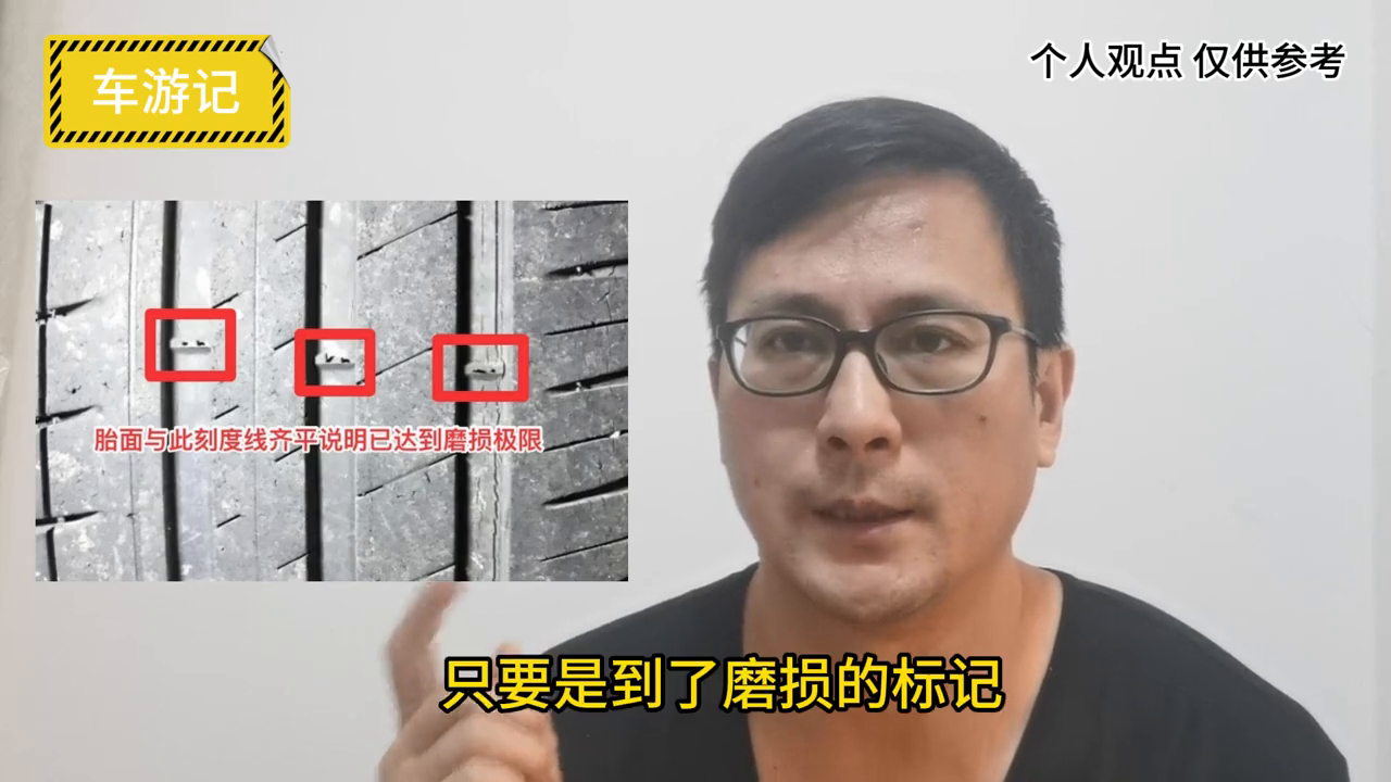 ·第一点,是检查轮胎的磨损程度。这个磨损程度主要是跟行驶的里程还有路面的环境有关。我这里贴出的图片大家可以参考一下,只要是到了磨损的标记,基本就可以考虑更换轮胎了。