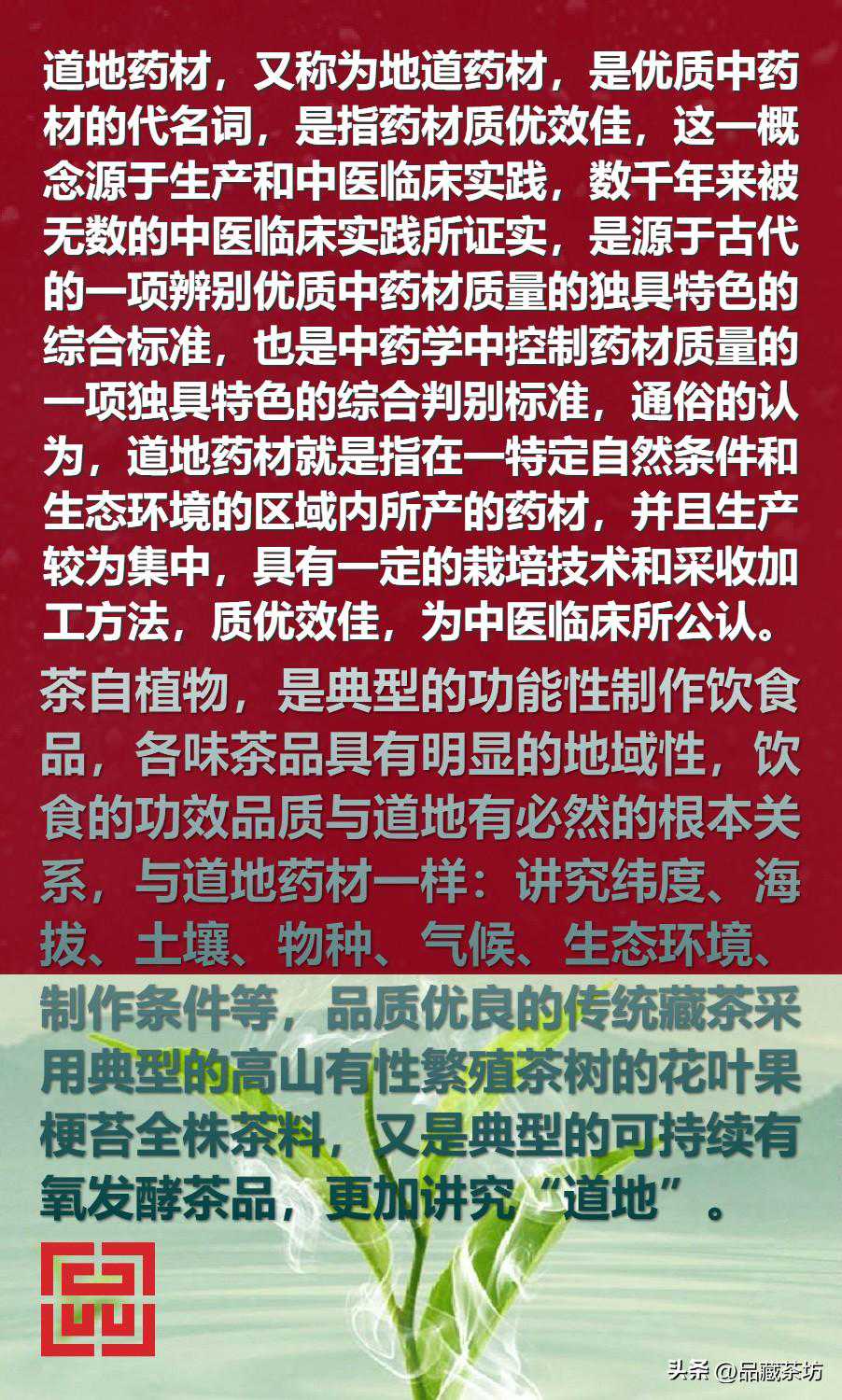 人类茶史数千年,因天时地利人工、社会文化演变等等因素,各地的茶品的特性和功效必定存在差异,非常讲究出处的“道地”,而茶饮又是典型的制作加工饮食品,特别是具有陈化发酵特性的发酵类茶品,更加讲究“道地”。