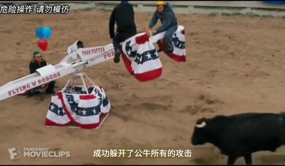 接下来这个游戏更让你眼前一亮,跷跷板结合斗牛,想出这种玩法人的脑子已经突破天际了。公牛一出来就已经进入了暴躁模式,看见人就直接顶。刚开始这几个兄弟配合的都挺好,成功躲开了公牛所有的攻击。现场的观众更是尖叫连连,每一次躲避成功都让他们疯狂。公牛似乎被他们耍的团团转。