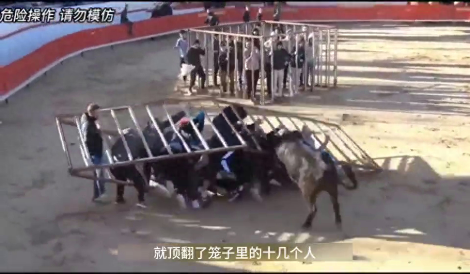 眨眼之间,这头暴躁的公牛就顶翻了笼子里的十几个人。这是国外的一个斗牛游戏,游戏的规则很简单,一群人待在铁笼子里吸引公牛去撞。本以为十几个人可以和公牛对抗,结果与他们想象的不一样。如果你不喜欢这种玩法,接下来这种玩法估计会让你惊喜。