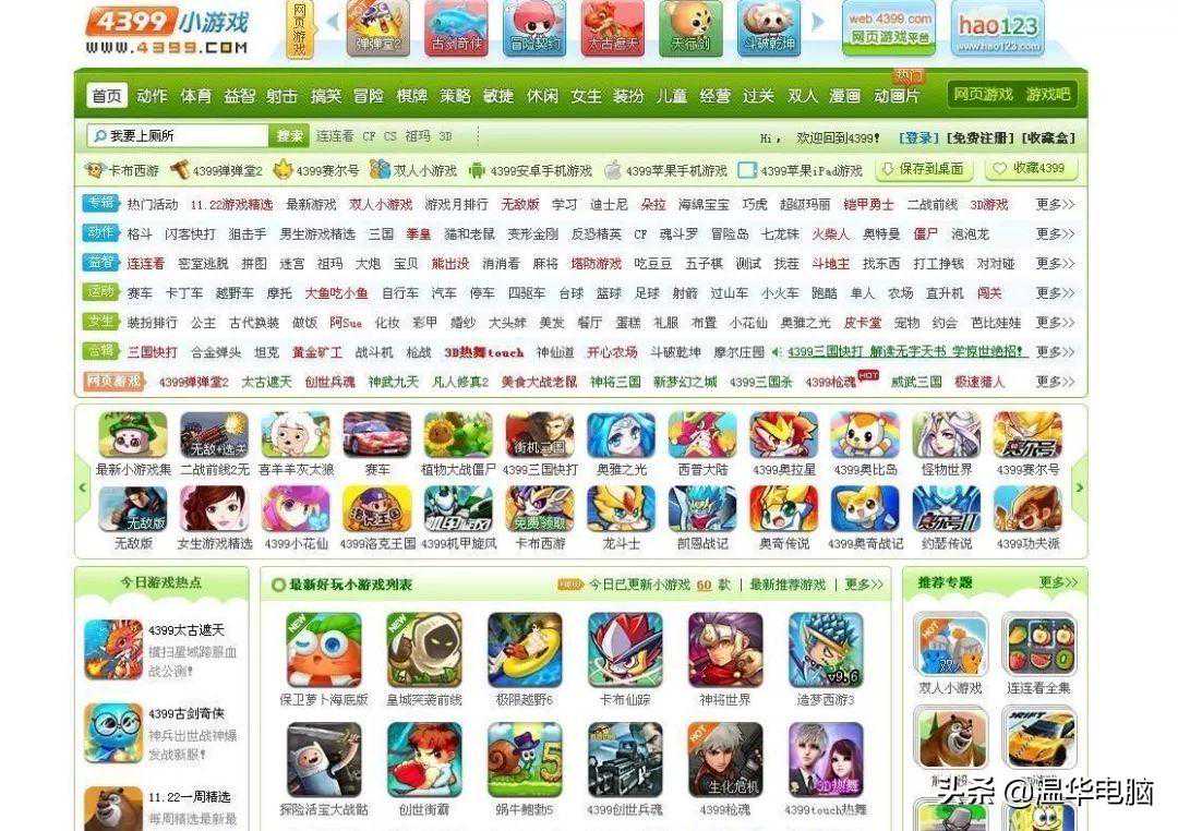 每逢暑假,乖乖帮家里做家务的动力就是能换取几个小时的游戏时间。做完家务迫不及待地点开hao123的网页,输入“4399”后敲下回车,一个新世界的大门就此打开。