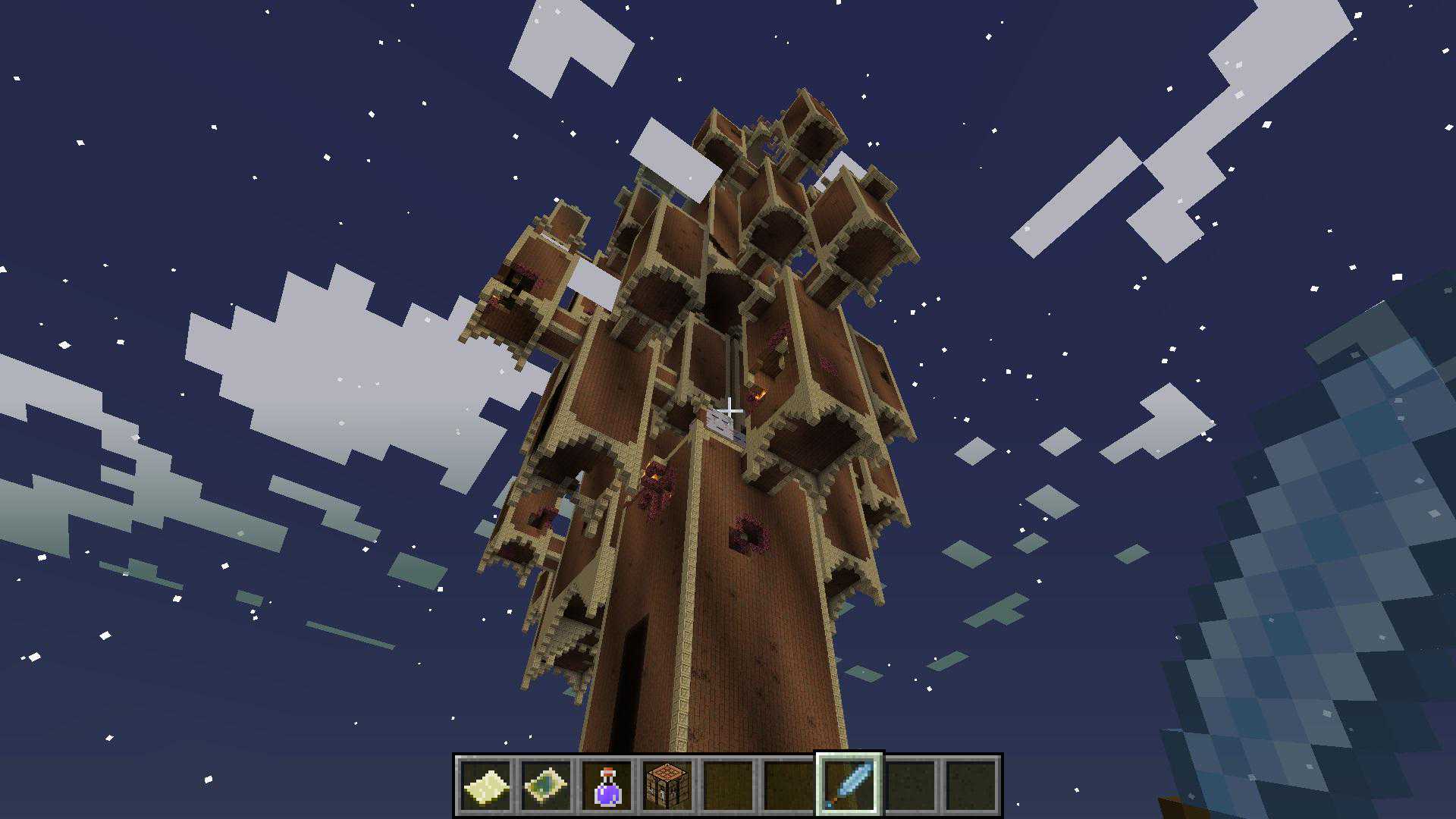 嘤嘤怪,有的小伙伴可能不知道嘤嘤怪是哪个boss,这个很好猜的,就是萌萌的恶魂啦~每次打她,她都会哭,发出嘤嘤嘤的叫声,还会使天空下血雨,洗礼你脆弱的心灵。这可能都不是最难得地方,打嘤嘤怪最难的地方还是如何登顶,因为有一种方块叫做反建筑方块,但是有反建筑方块就一定会有建筑方块——高塔建造者,用红石激活就可以建造出一条路,但是有时间限制,不过足够通过了。