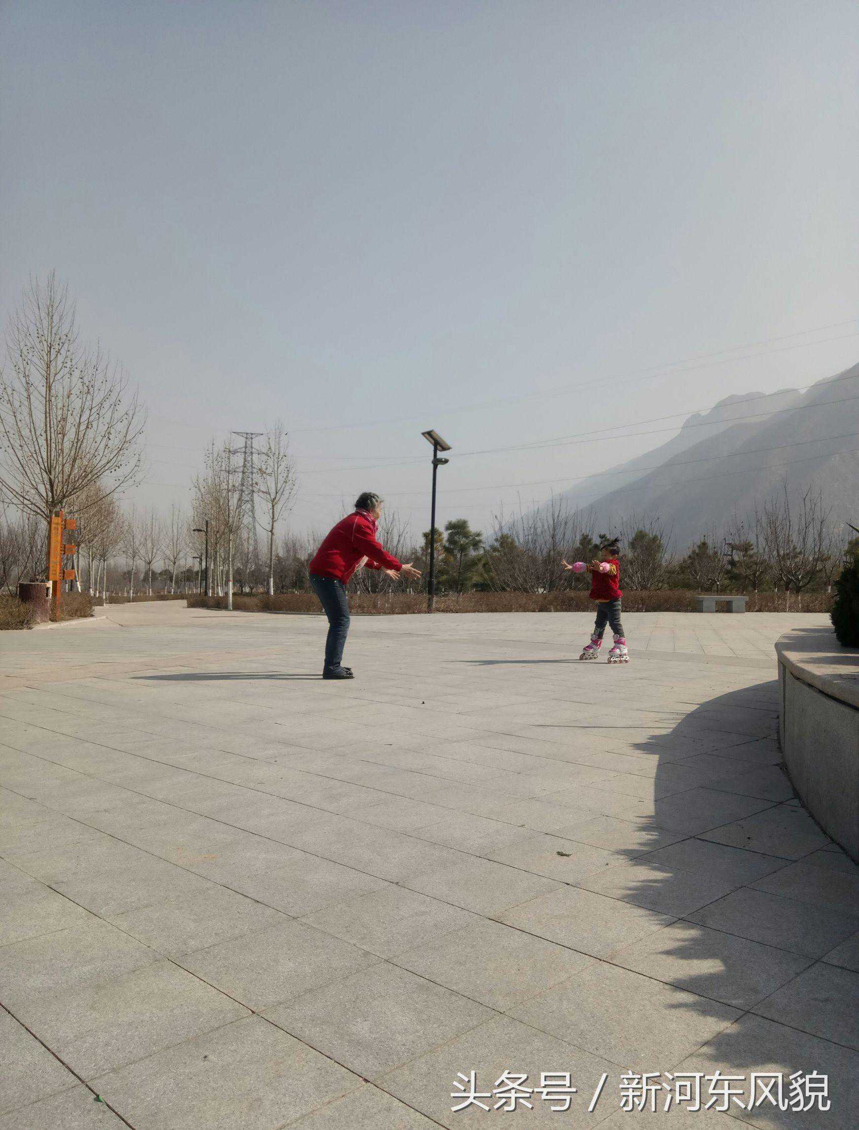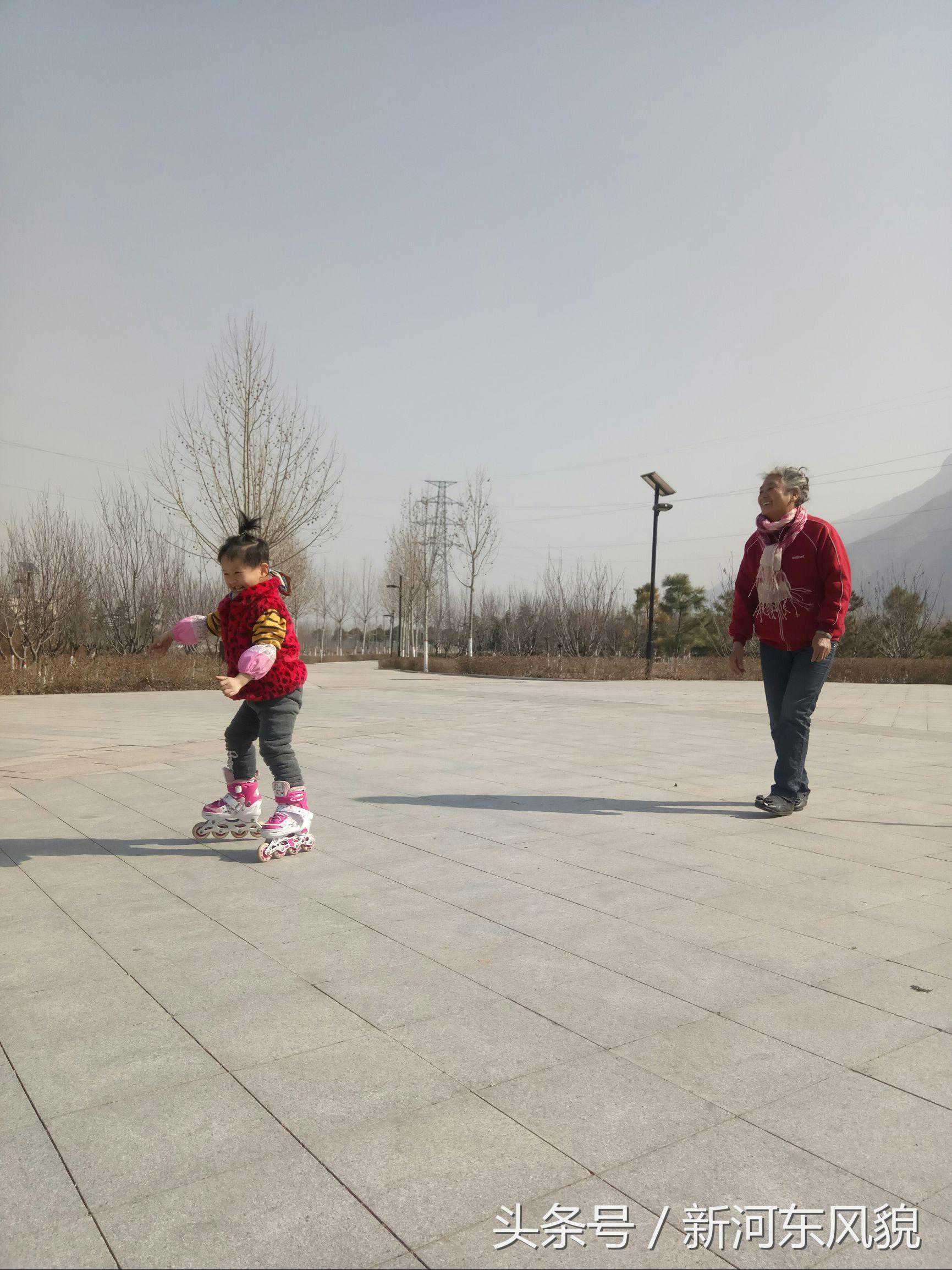 小孙女就像小燕子一样,欢快的滑着旱冰,奶奶在后面招呼着:慢点。