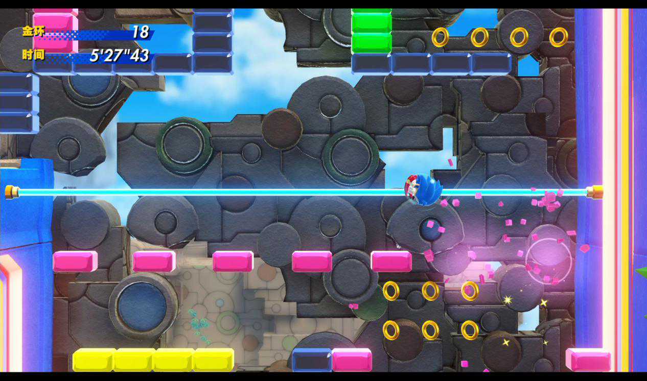 一方面,“2D索尼克”的操作逻辑确实不那么符合今天玩家的操作习惯;但另一方面,这些“烦人”的物理特性却又与游戏核心环环相扣,让人很难挑出什么毛病。