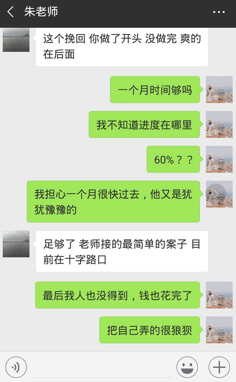 因为与前男友分手,沉浸在失联痛苦中的沈西(化名)购买了小鹿情感平台上的恋爱导师的挽回前男友服务。在付款前,导师向其承诺1个月就能挽回男友,并声称“这只是一个小案子,想挽回绰绰有余”。而导师所谓的方法就是自己与沈女士的前男友进行沟通劝解,同时不定期地教授沈女士一些所谓的“相处技巧”。