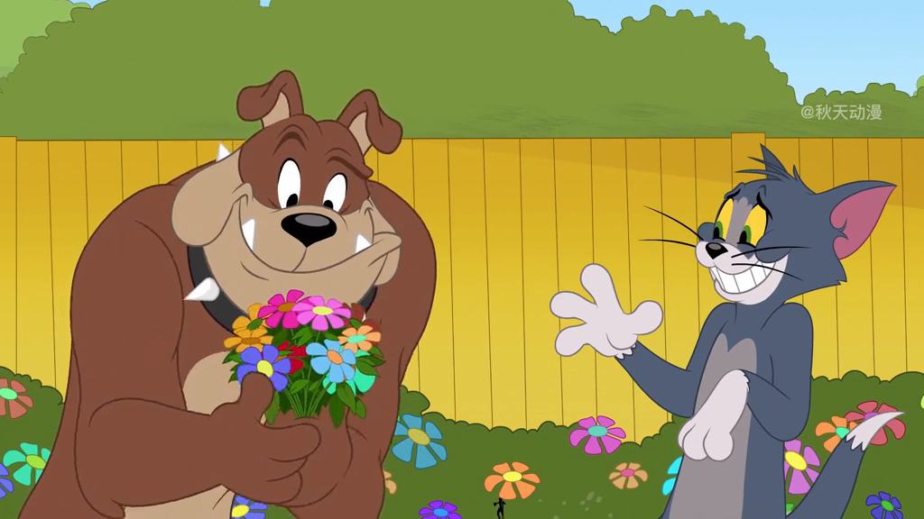 汤姆的反常行为立马就让图茨的第六感反应了过来,这些玫瑰花竟然不是送给自己的,那么一定是送给其他小母猫的了。图茨当即就生气地上前训斥汤姆是个渣男,然后直接把玫瑰花往墙外丢了出去。