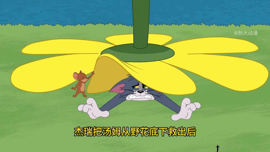这时杰瑞及时出现示意汤姆加大用量,于是汤姆果断把一整瓶都浇了下去。杰瑞把汤姆从野花底下救出后,男人也刚好带着女人回到了家里。这下真的完犊子了,汤姆根本无法想象自己后面的日子该怎么度过,与其呆着等死不如一不做二不休主动出击。