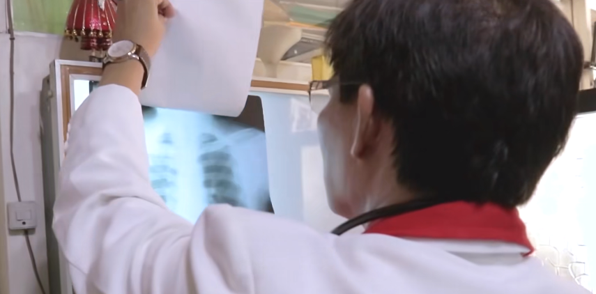 提炼工在妻子的催促下,来到矿场不远处的一个小诊所里,医生神色凝重地看着工人的片子,由于长期接触细小粉尘,不佩戴口罩,尘肺病已经是板上钉钉了。